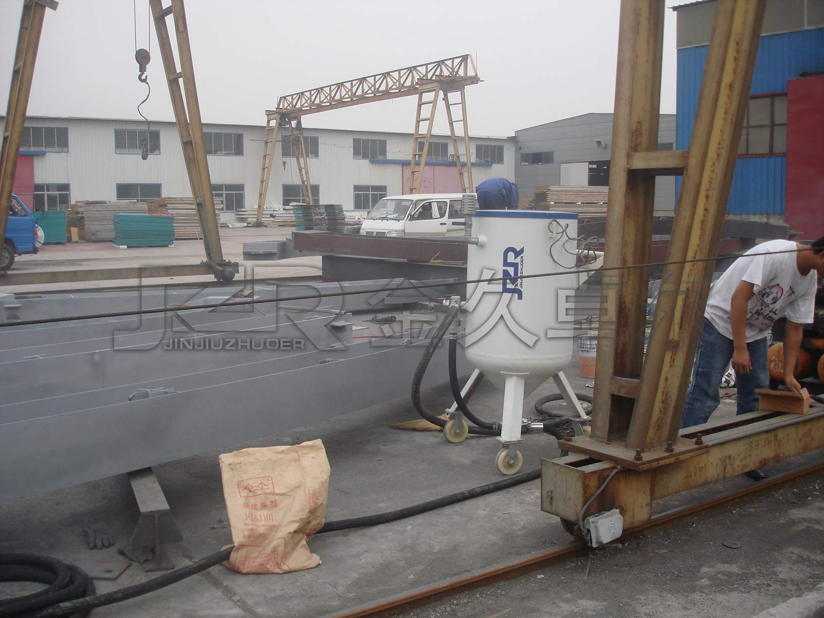 The JZK-600P press in sandblasting machine is suitable for sandblasting rooms, sandblasting rooms, and open sandblasting operations in the wilderness. It is used for the treatment of oxide scales on special and hard materials. This equipment has high pressure and high efficiency sandblasting performance, and is one of the ideal equipment for cleaning, removing rust, paint, scaling, strengthening surfaces, and eliminating internal stresses on the surface of large metal structural components before coating. The difference between this equipment and JZK-600S sandblasting machine is that it is equipped with a pneumatic remote control device, which enables 20 meter remote sandblasting control. It can be combined with our company's JZF sand and dust separation device to form the JZF-600 split recycling sandblasting machine, achieving dust-free, pollution-free and environmentally friendly sandblasting.